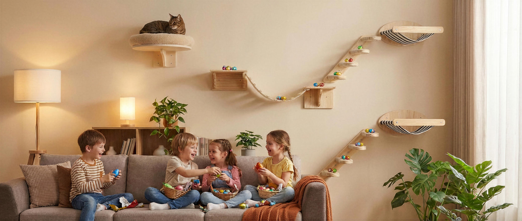 A cat climbing wall is more than just a design trend. It is a smart, stylish and healthy solution for cats that need more movement, stimulation and comfort. With our premium cat wall furniture sets, you use vertical wall space efficiently while keeping your floors clean and organized.
