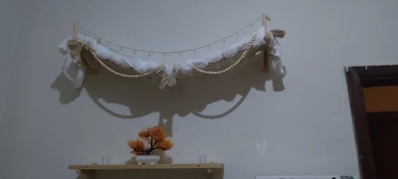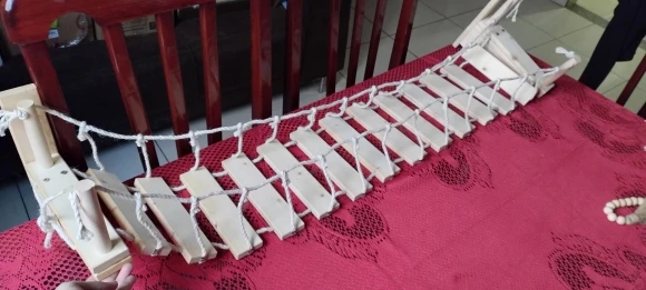 Die Holzteile der Brücke lassen sich leicht lackieren oder beizen, sodass Sie das Aussehen individuell an Ihre Inneneinrichtung oder Wandgestaltung anpassen können. Dadurch eignet sich die Brücke sowohl für natürliche als auch für verspieltere Umgebungen.