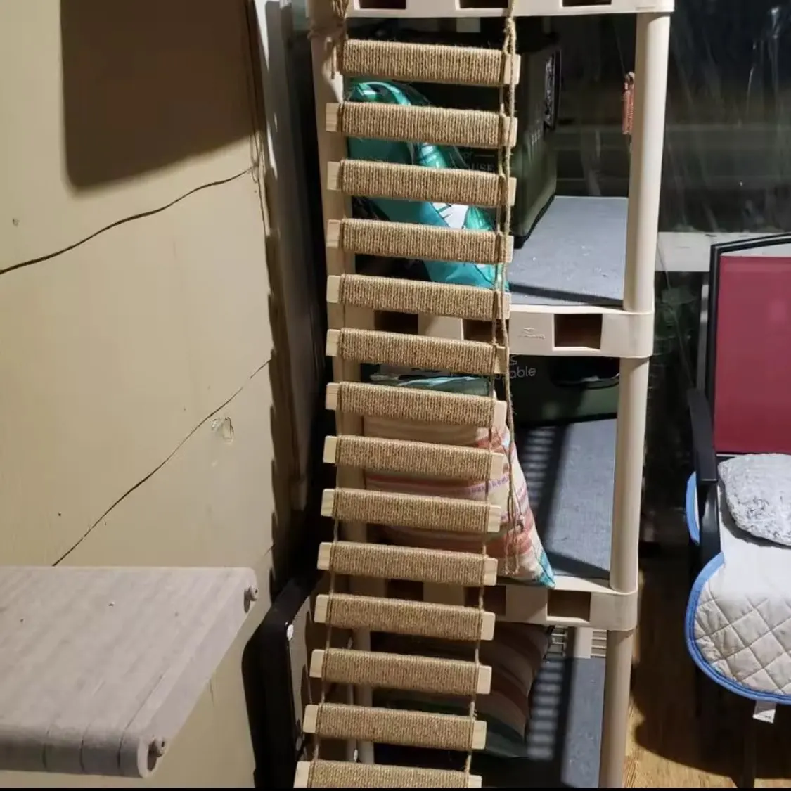Die stabilen Holzsprossen ermöglichen Ihrer Katze ein sicheres Klettern ohne übermäßige Bewegungen. Dadurch eignet sich die Leiter für Katzen, die eine feste und ebene Unterlage bevorzugen, wie beispielsweise Kätzchen, ältere Katzen oder vorsichtige Kletterer.