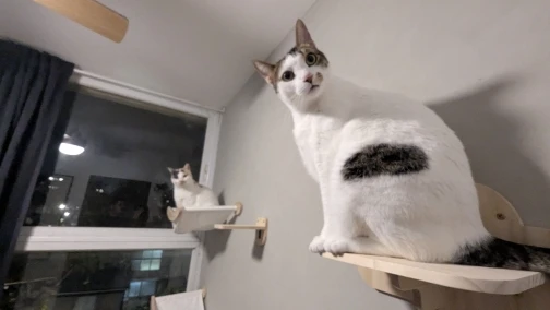 Diese an der Wand befestigte Holzplattform ist ein schlichtes und vielseitiges Element, das sich mühelos in Ihre Wandgestaltung einfügt. Sie bietet Ihrer Katze einen stabilen und bequemen Platz zum Ausruhen, Sitzen oder um sich zwischen verschiedenen Wandelementen zu bewegen.