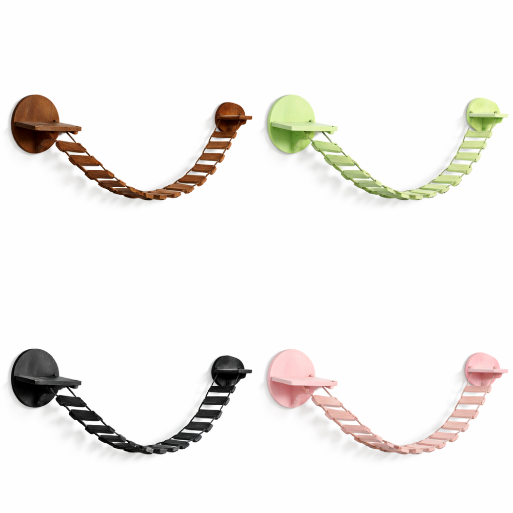Wenn Sie Ihrer Katze eine spannende und bewegliche Strecke an der Wand bieten möchten, ist diese Katzen Seilbrücke mit Plattformen eine ideale Ergänzung Ihrer Katzenwand. Sie verbindet Spiel, Bewegung und Design in einem funktionalen Wandmöbel.