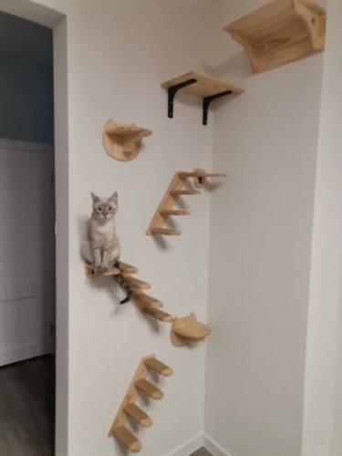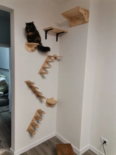 These wall-mounted scratching steps allow you to expand your cat wall vertically in a natural and playful way. They create an engaging climbing route while adding texture and variety to your wall setup.