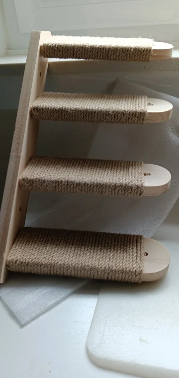 Die Katzentreppe Wand besteht aus stabilem Kiefernholz und wird sorgfältig verarbeitet. Die robuste Konstruktion sorgt für Stabilität und eine lange Lebensdauer im täglichen Gebrauch.